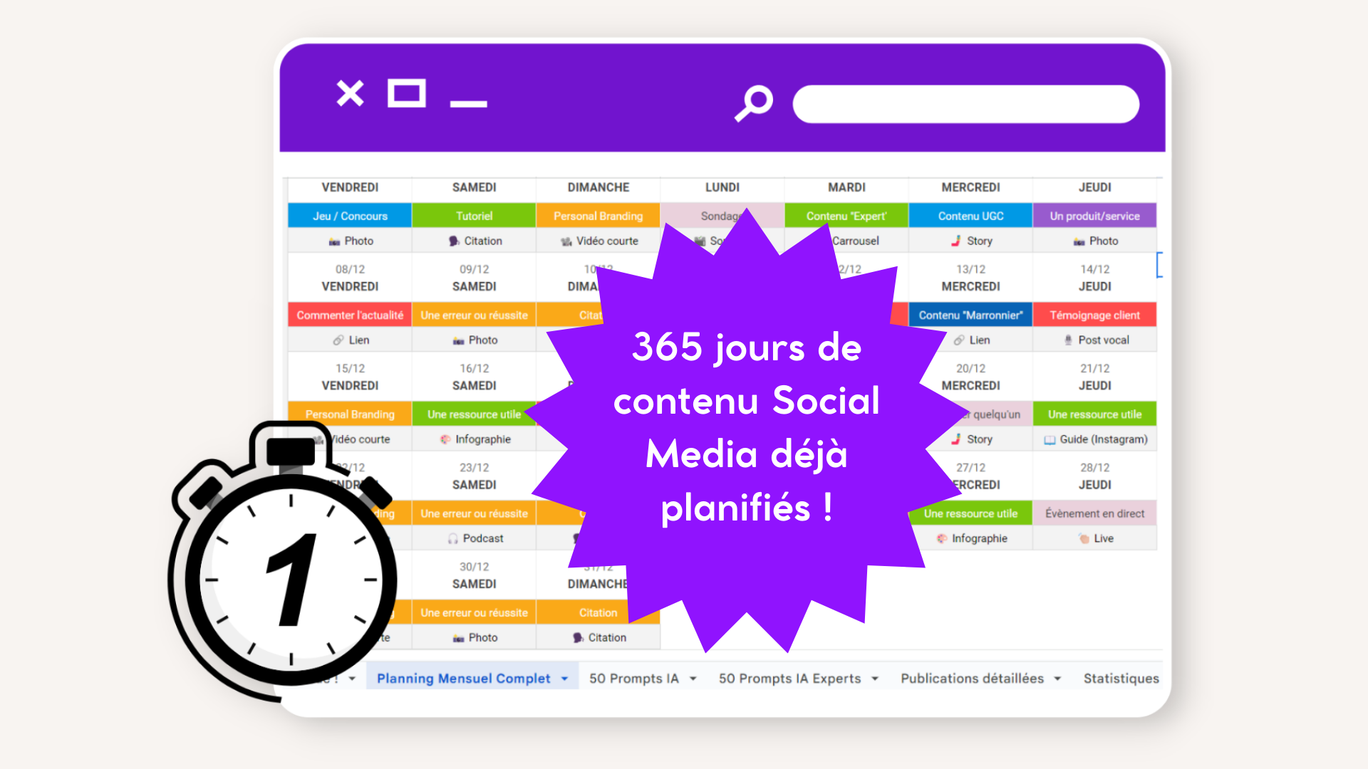 Simplifiez l’animation de vos réseaux sociaux avec 365 Jours de contenu déjà prêts dans un planificateur intuitif et personnalisable.👇