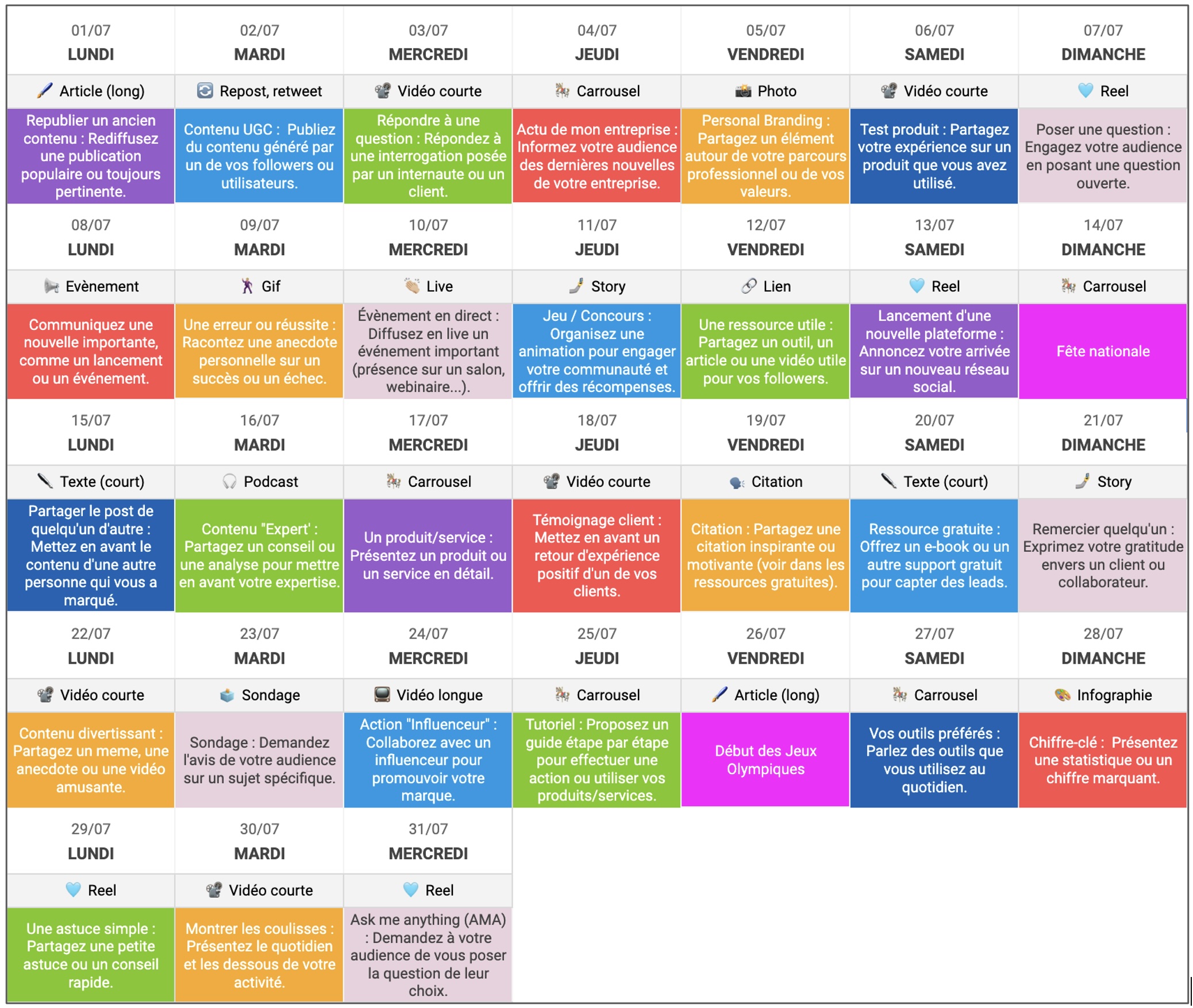 Un calendrier éditorial clé-en-main qui simplifie radicalement l'animation des réseaux sociaux.